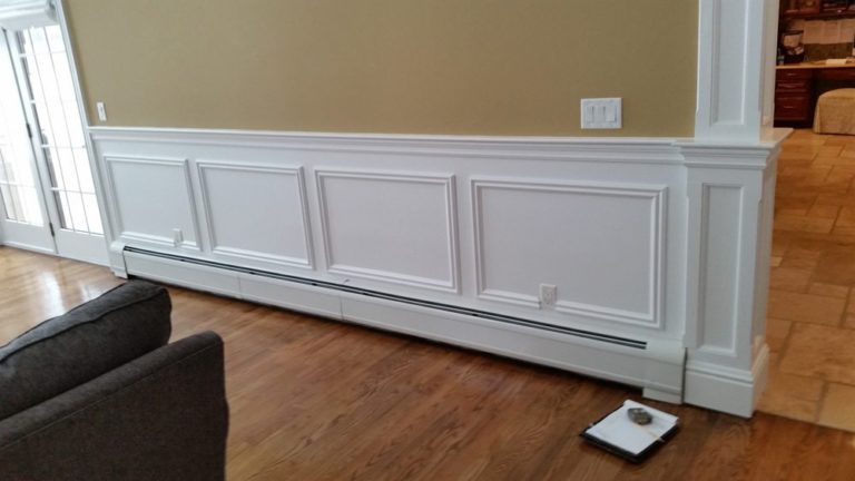 There are many ways to design an attractive wood cover. The metal fins of the heater can be concealed behind a panel, under a window seat or inside an nicely designed cover that is decorated with little panels, or faced with the same baseboard moulding as the rest of the room.