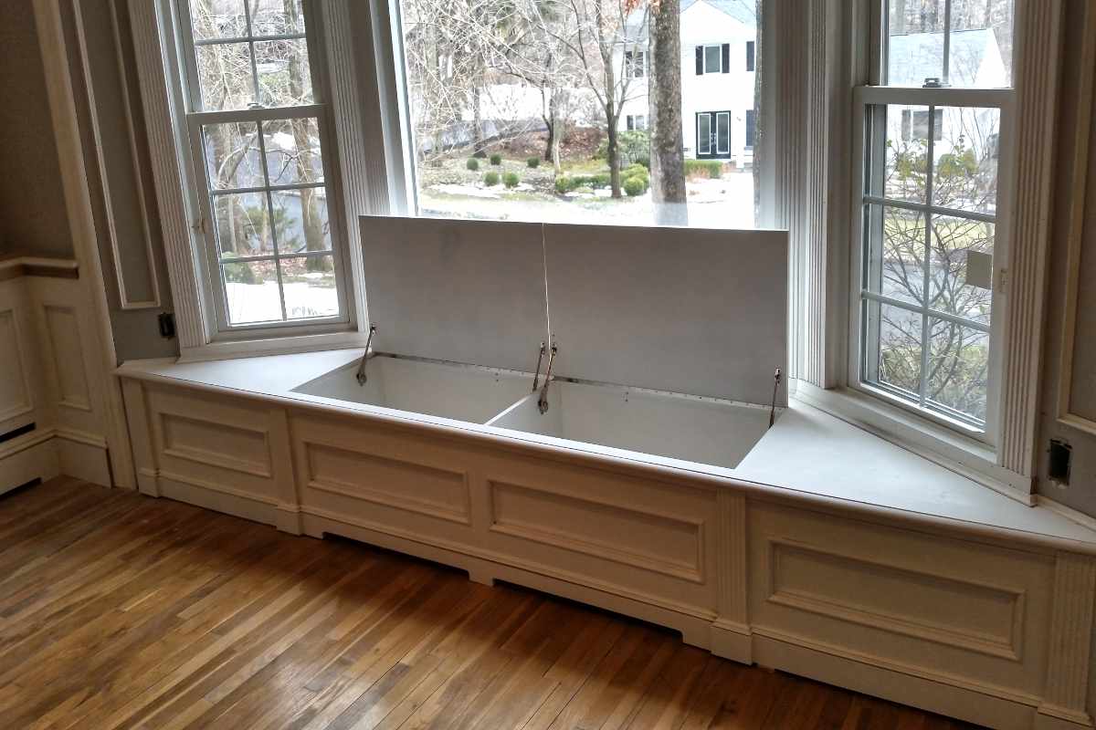 Nonetheless, the house has some nice features to build on. It has large rooms, a fireplace, a large bay window, and a wide opening between the two rooms.