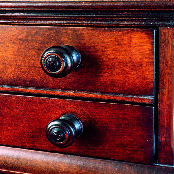 Dark Mahogany is a striking wood that often has wonderful ribbon patterns as well as great color. Mahogany looks best when stained a deep brown like the old growth wood that is no longer available. We use the highest quality aniline dyes for this.